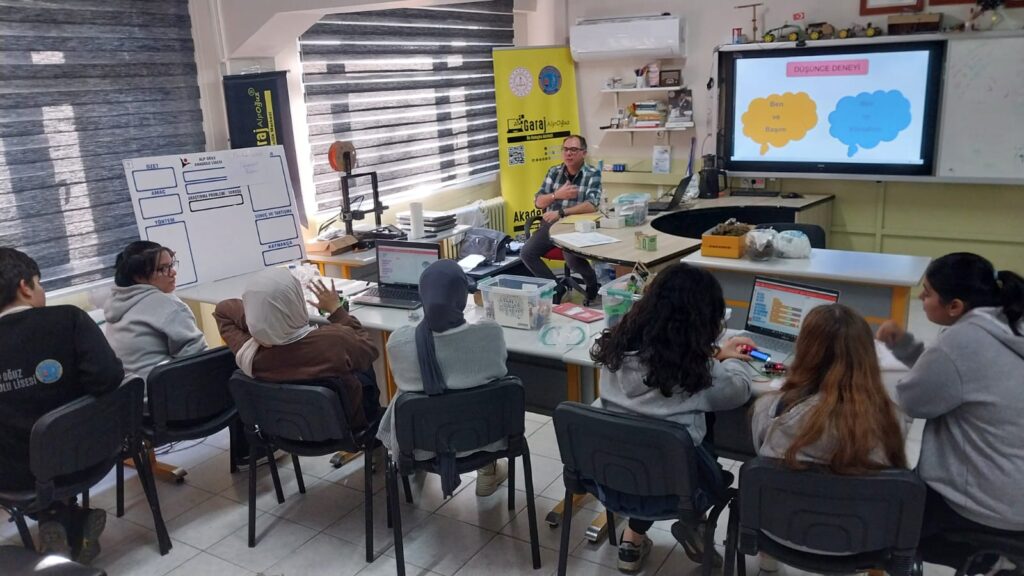 Pinoo ile STEM Meydan Okuması yarışmasının öncesinde yarışmacı öğrencilerimiz bir aydan fazla süre yalnızca teneffüs ve öğle tatillerinde hazırlıklarını sürdürdüler. Programlama ve Robotik Eğitmeni Erşan Altürk öğrencilerimize hazırlık sürecinde STEM, Robotik, Kodlama, Algoritma, IoT konularında seminer verdi. 18 Aralık 2025 tarihinde gerçekleşen seminerde öğrencilerimizin sorularını yanıtladı. İki saati aşkın süre Garaj’ımızda bilim rüzgarı esti.